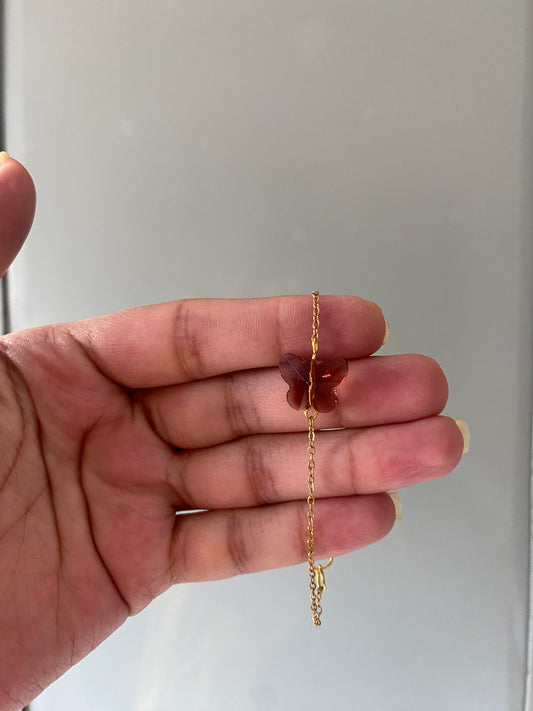 BROWN CRYSTAL BUTTERFLY CHAIN BRACELET