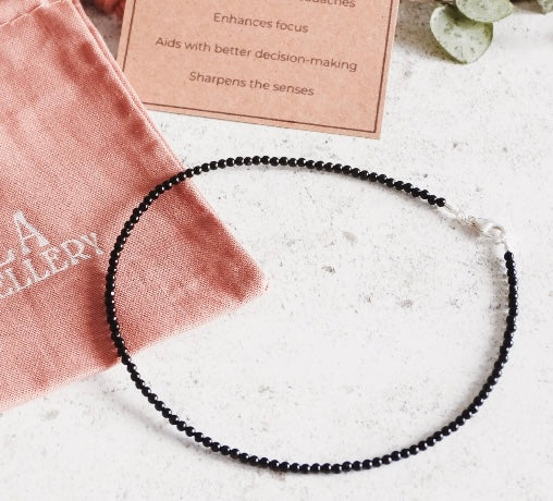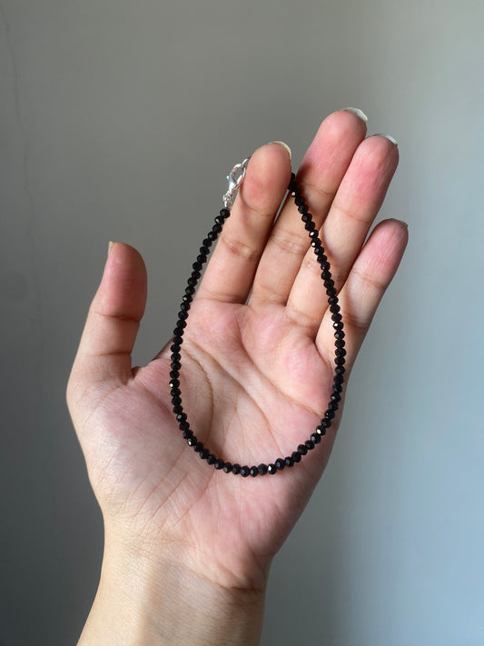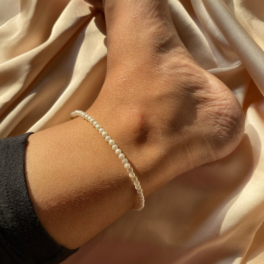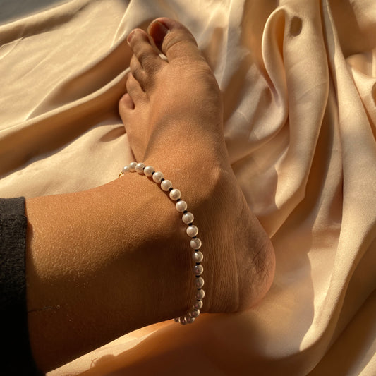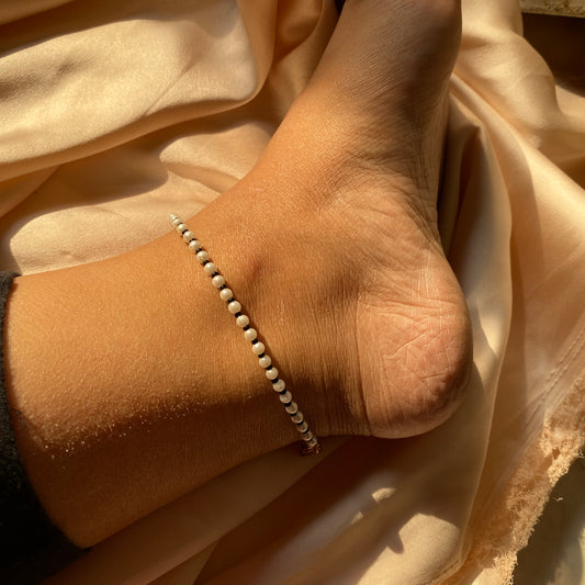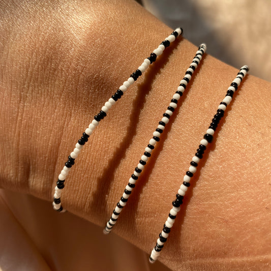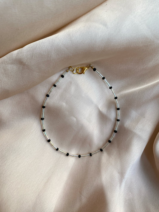 BEADED FLOWER ANKLET - BLACK AND WHITE