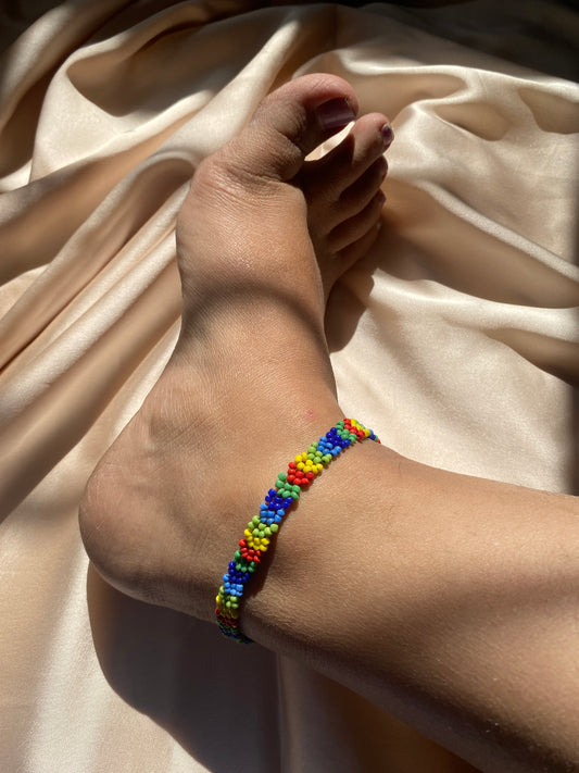 Sold outA BUNCH OF BEADED FLOWERS- ANKLET
