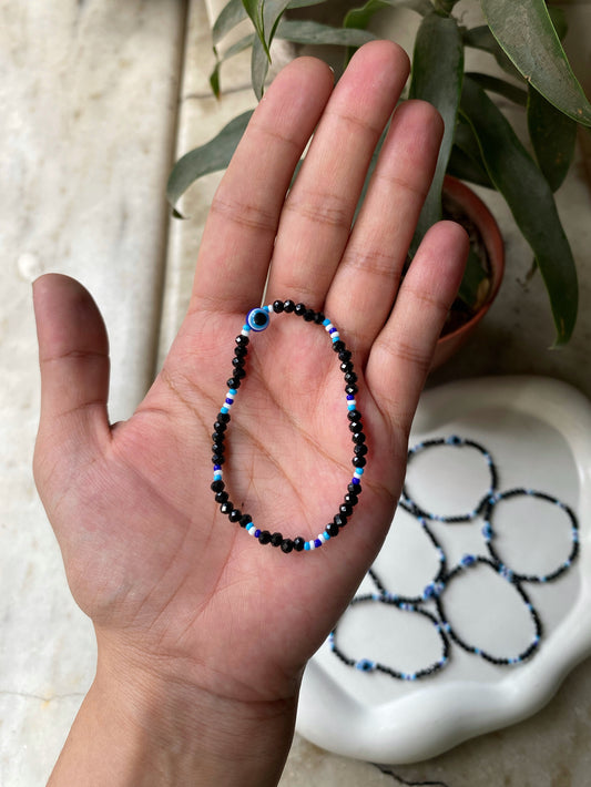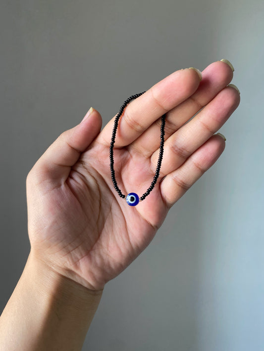 MINIMAL BLACK BEADED EVIL EYE BRACELET