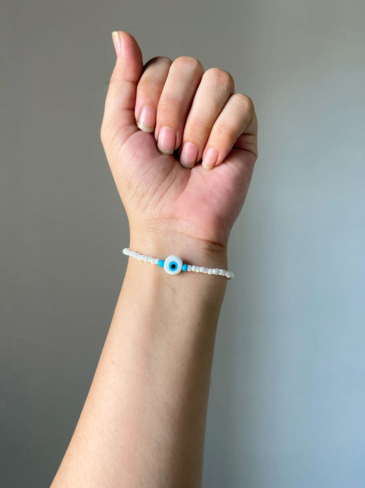 WHITE MINIMAL BEADED EVIL EYE BRACELET