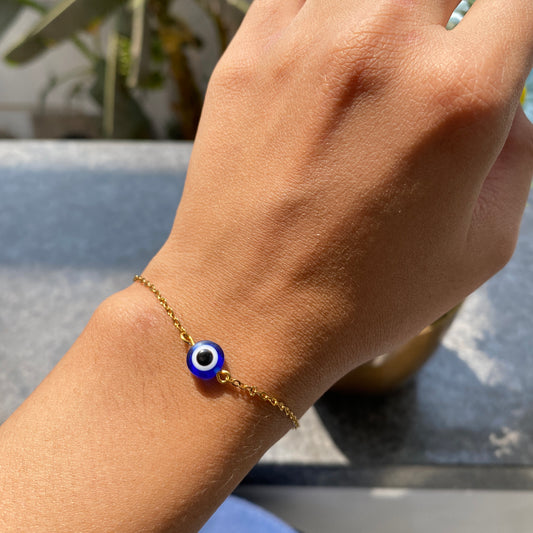 MINIMAL EVIL EYE SILVER CHAIN BRACELET