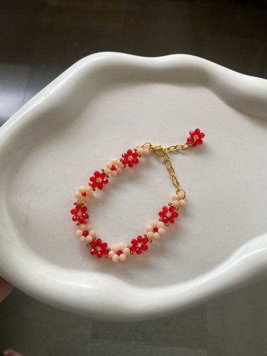 RED AND NUDE CRYSTAL FLOWER BRACELET