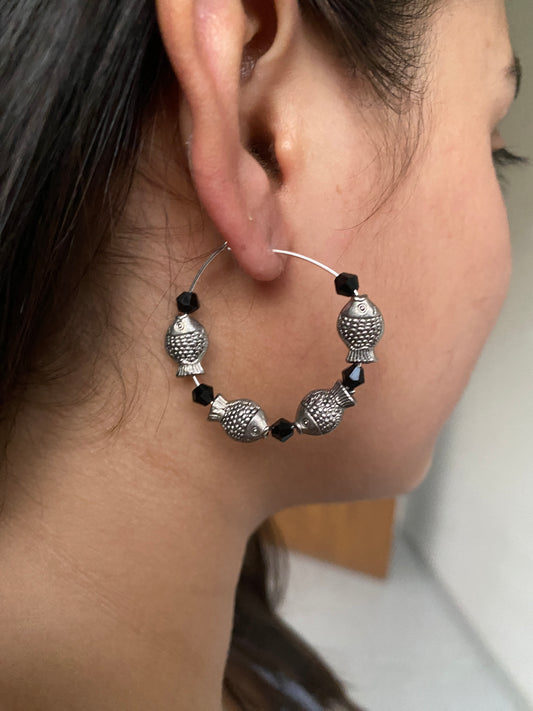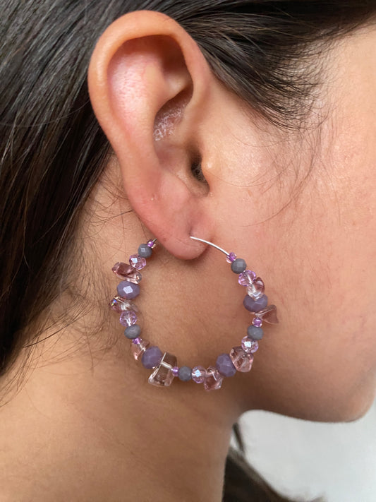 PURPLE AND GREY CRYSTAL HOOP EARRINGS