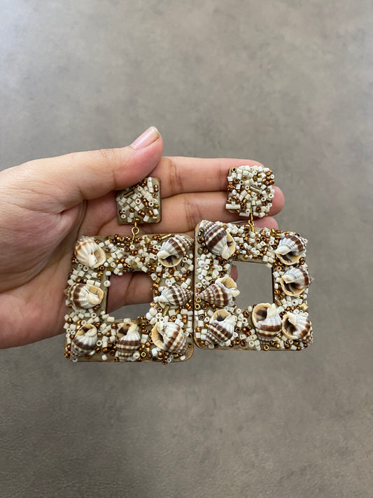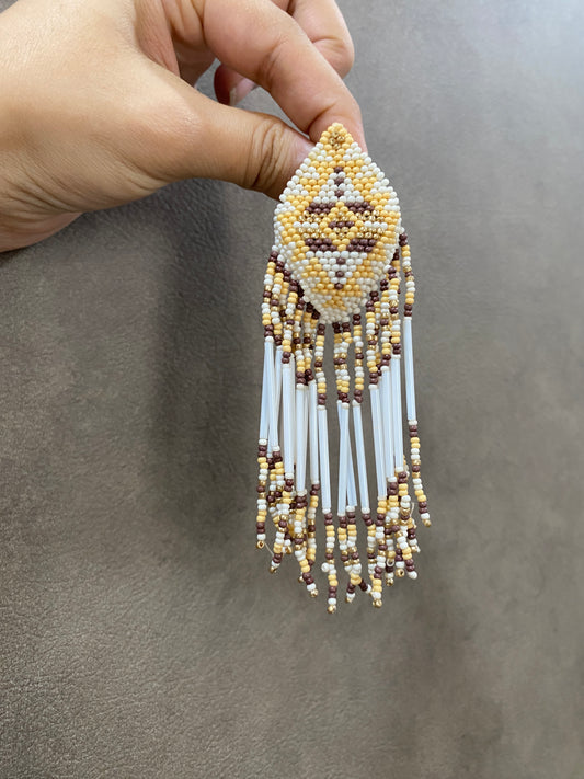BEIGE TONED FRINGE TASSEL EARRINGS