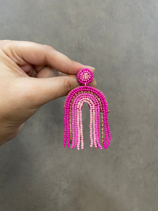 PINK RAINBOW FRINGE TASSEL EARRINGS